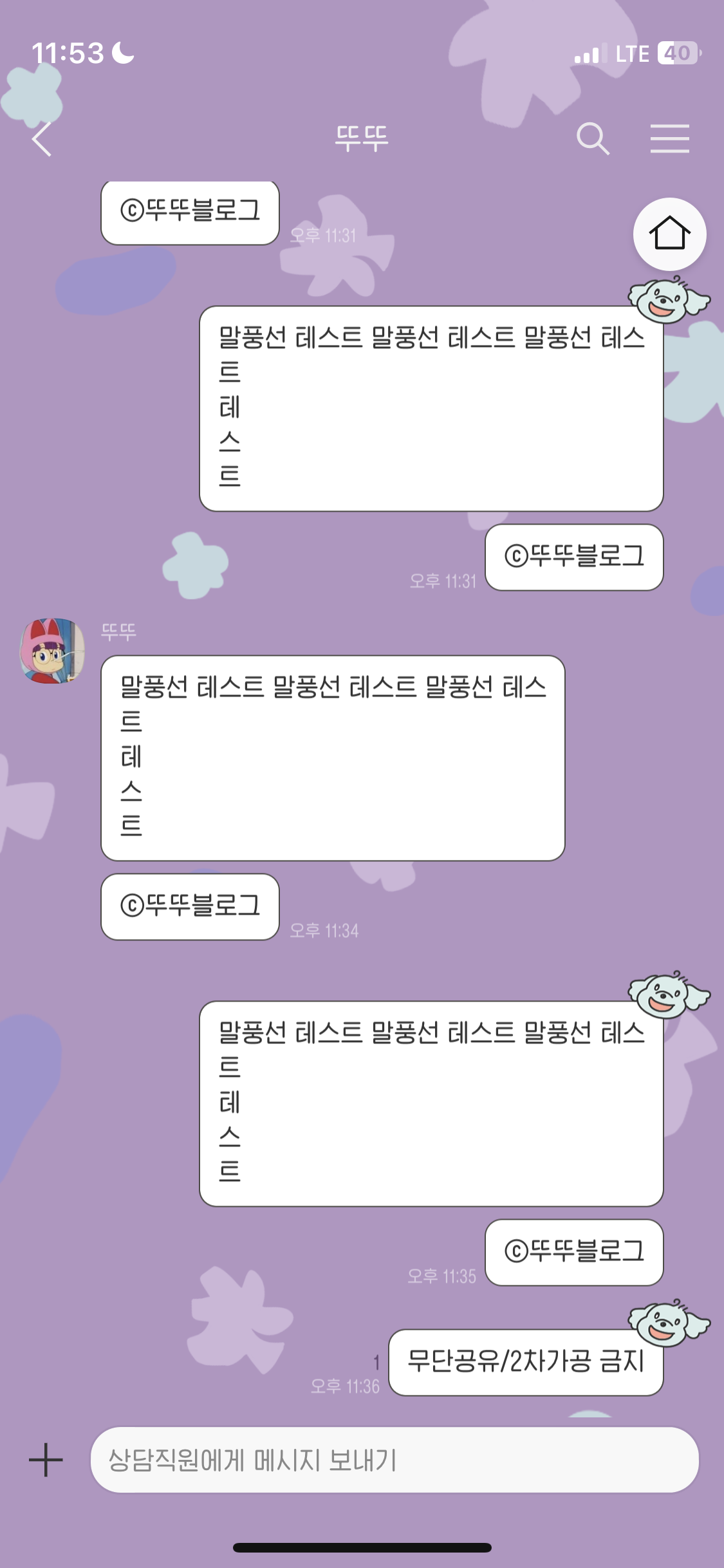 채팅의 길이에 따라, 폰트의 종류·크기에 따라 보낸 시간이 약간 짤릴 수 있습니다.